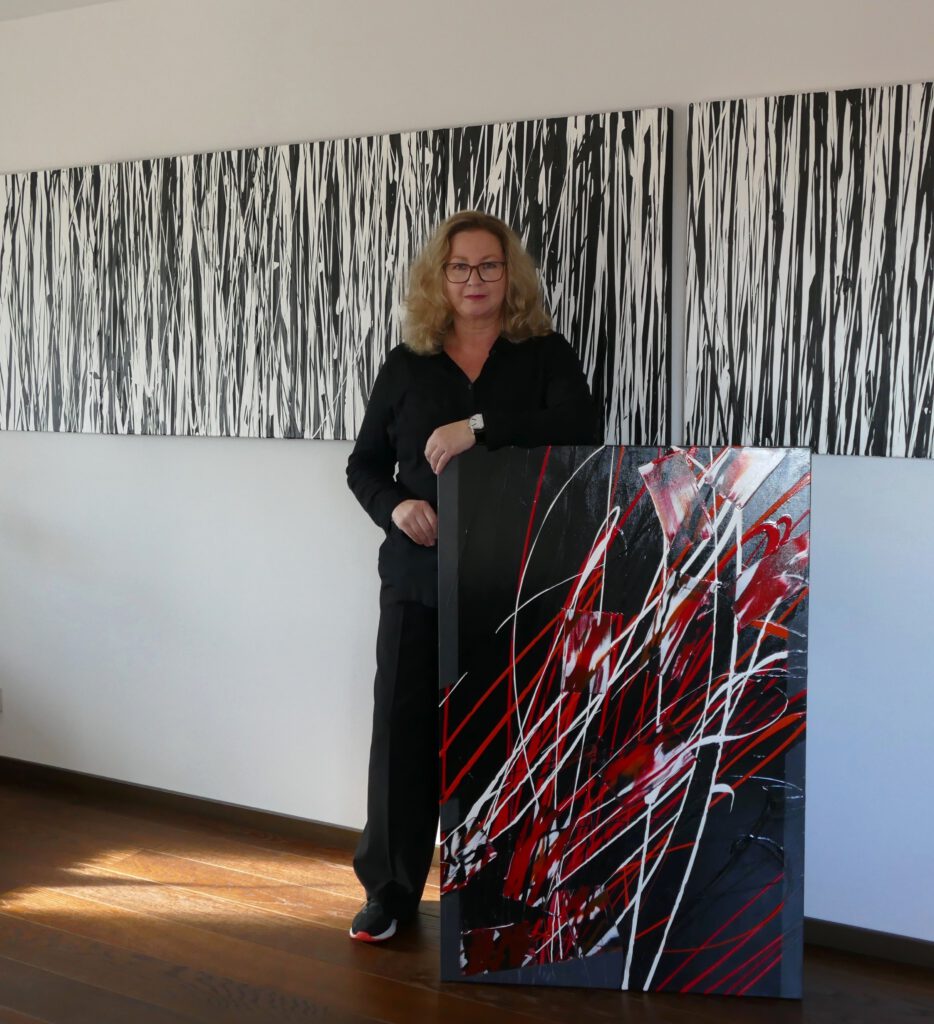 Ihren Stil entwickelte sie vor gut 15 Jahren hin zum abstrakten Expressionismus, dessen berühmtester Vertreter Jackson Pollock ist, erweitert diesen jedoch formal als auch inhaltlich. Die Künstlerin ergründet in ihrem künstlerischen Prozess, das Spannungsfeld von Freiheit und Grenzen sowie der Komplexität des Lebens, seiner komplexen Zusammenhänge und der Frage nach Verantwortung im eigenen Dasein.